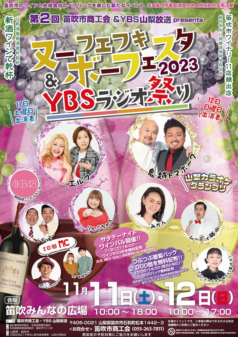 | お問い合わせ | 主催/笛吹市商工会 YBS山梨放送 お問い合わせ TEL. 055-263-7811(フエフキヌーボーフェスタ実行委員会) |