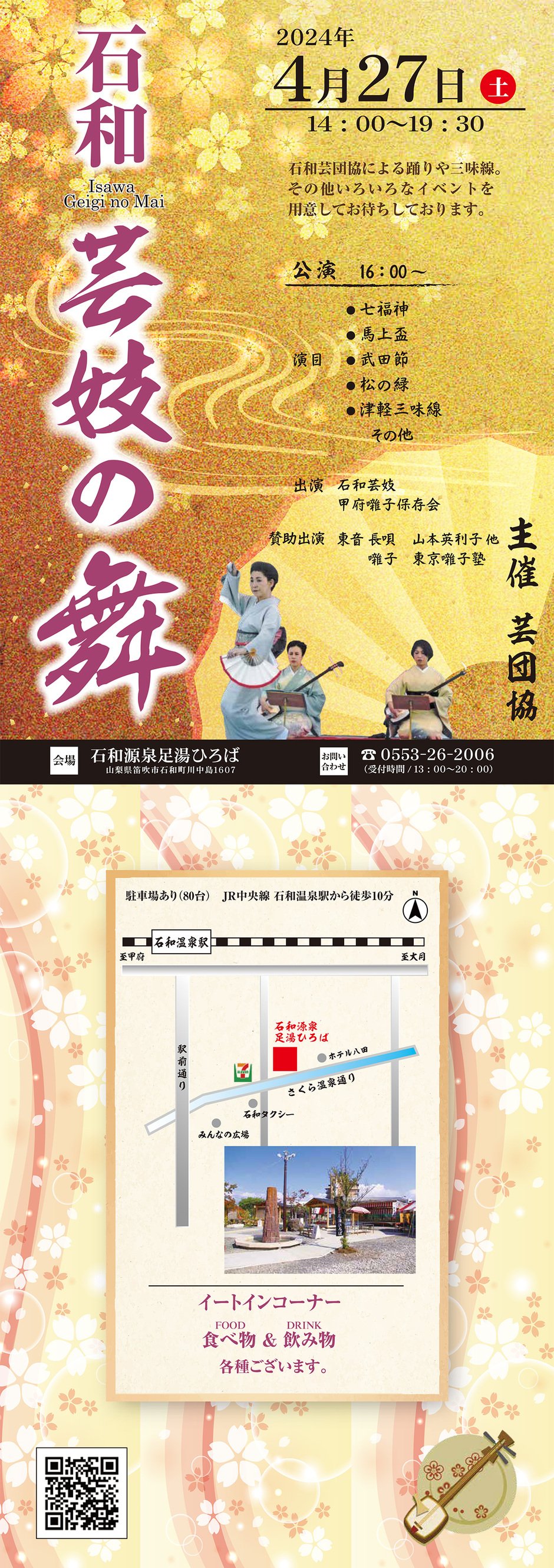 | お問い合わせ | 主催:石和芸団協 お問い合わせ:TEL0553-26-2006(受付時間 13:00〜20:00) |