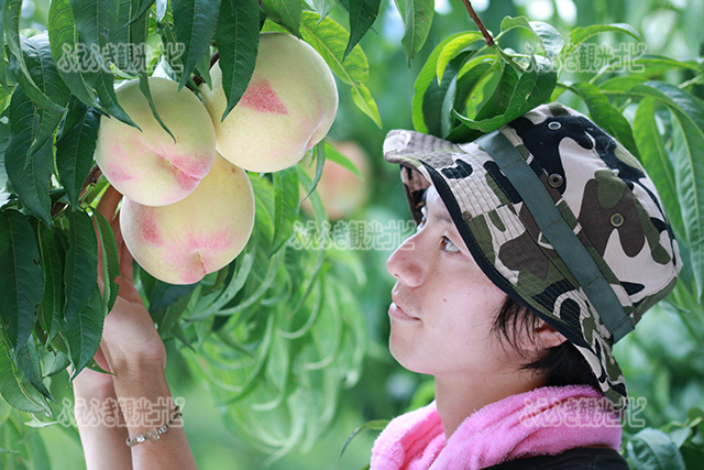 大好きな山梨の桃。尊敬する友人が桃園を始めたので、桃狩りに行ってきました。桃狩り後、「次の品種をみせてあげるよ」と連れていってくれた桃園で、ももの説明をしながら桃の世話をしていた時の、何気ない一瞬です。手塩にかけて、愛情込めて育てているんだな、というのがとても伝わってきました。