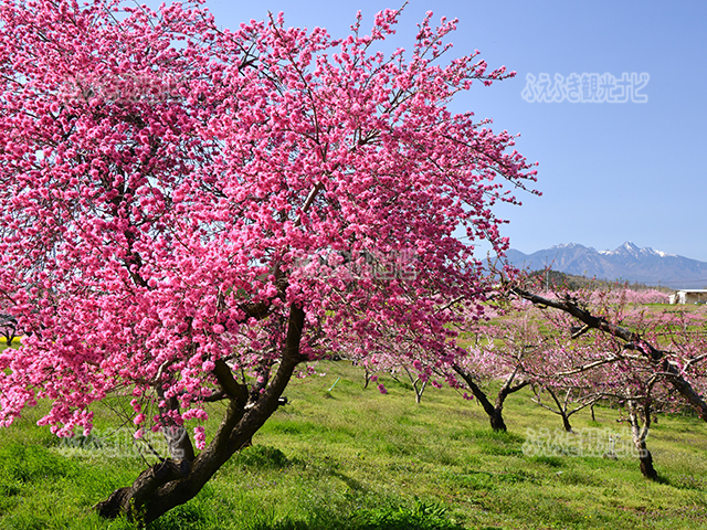 遠くに残雪の南アルプス(?)を望む笛吹の桃の里は、笛吹の風物詩です。