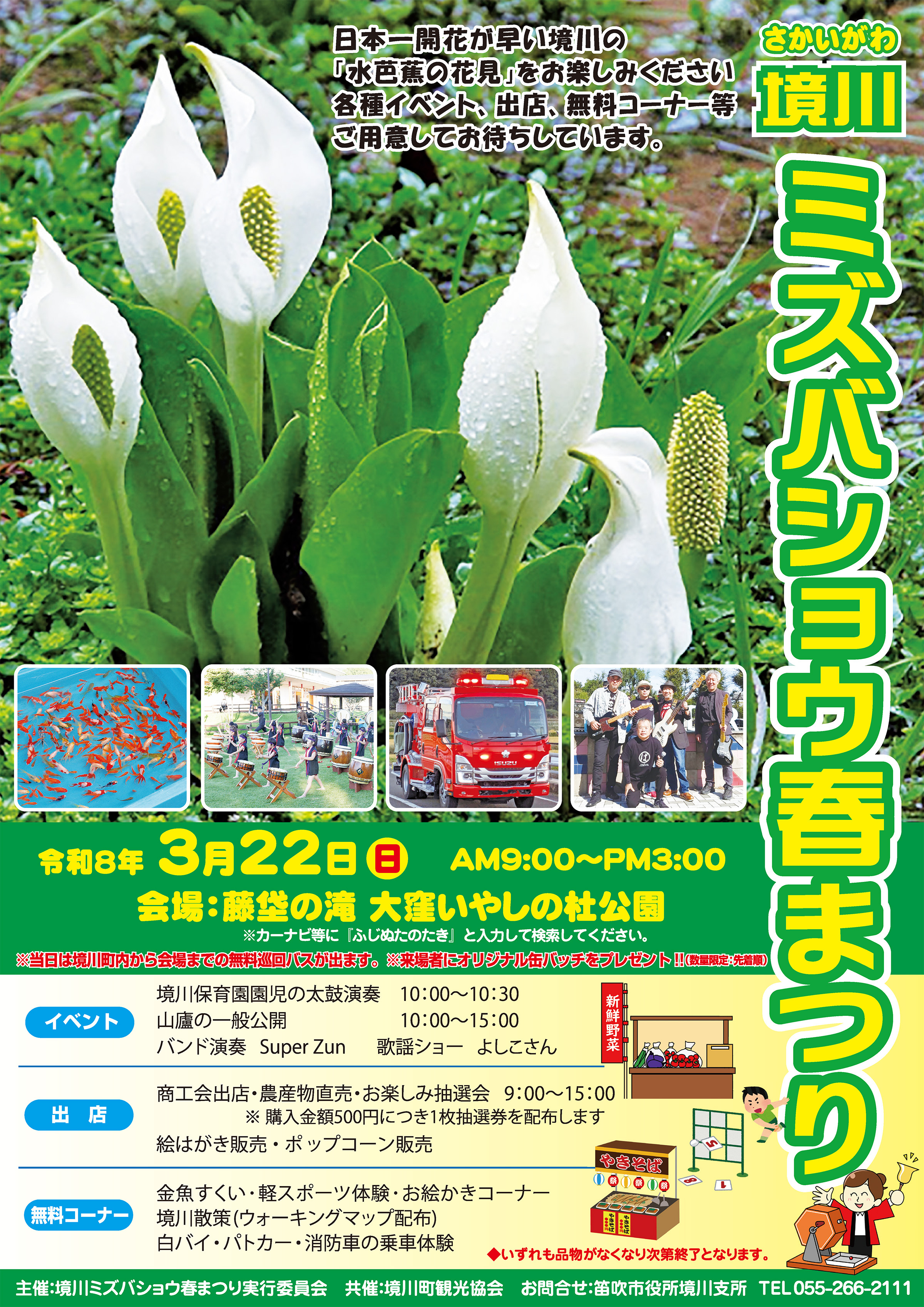 ※3月下旬〜4月上旬に水芭蕉が見頃を迎えますので、一足早いお花見と、